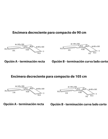 - Opción B: La terminación del lado corto curva (puede ser a la derecha o la izquierda).