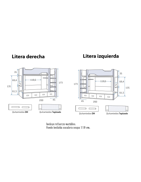 En el precio no se incluye colchones, somieres, ni los objetos de decoración que aparecen en la foto.