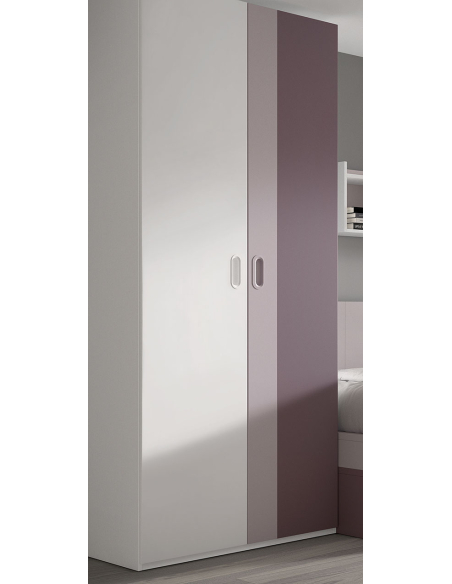 Armario juvenil 2 puertas largas con franja, disponible en cuatro anchuras diferentes a partir de 84,1 cm, y tres alturas, 220, 240 y 248 cm, combinables entre sí. Echa un vistazo a los acabados para las puertas y combínalo con el tirador que más te guste.