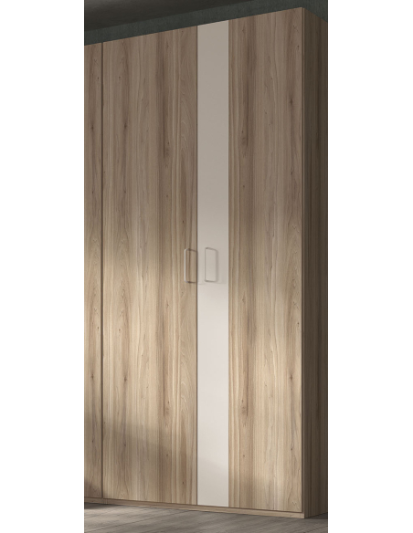 Práctico armario de dos puertas largas batientes con franja con el cual conseguirás tener todo en orden y organizado en un reducido espacio. El interior es un módulo con una barra para colgar la ropa, estante móvil y estante maletero. Un imprescindible en las habitaciones tanto a nivel organizativo como compositivo.