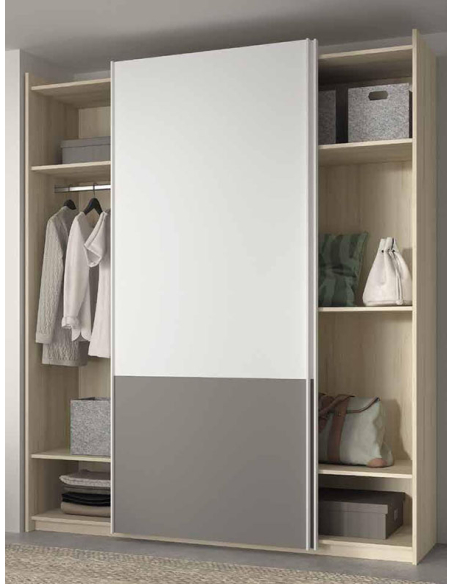 Estructura de armario se pueden realizar en acabados base y en los siguientes colores combinables: Polar, Essence, Onyx, Seda, Gris, Piedra, Pizarra, Pink, Rosado, Ciprés y Avio. En el caso de elegir estos últimos (colores combinación) el interior del armario ira en acabado blanco. Las puertas se pueden realizar en cualquier acabado de la tabla.