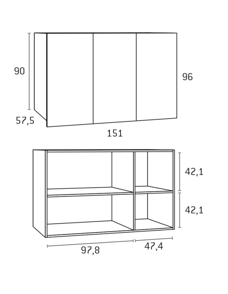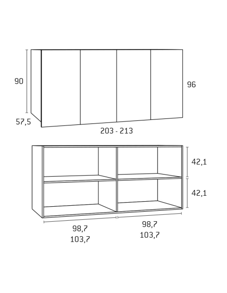 Cuatro puertas:  ↔ 203 cm ↗ 57,5 cm ↕ 90 cm - Para nido o compacto de 200 / Necesita bastidor metálico o soporte metálico de sujeción.