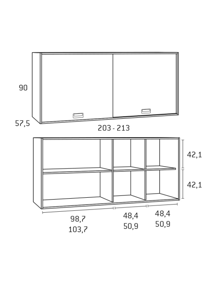 Para nidos o compactos de 200: ↔ 213 cm ↗ 57,5 cm ↕ 90 cm / Necesita barra, bastidor metálico o soporte metálico de sujeción.