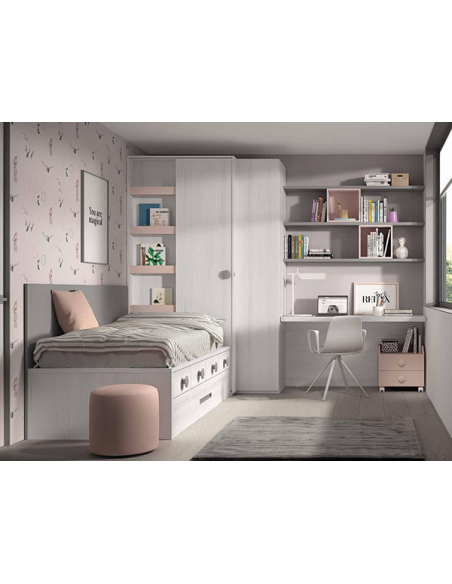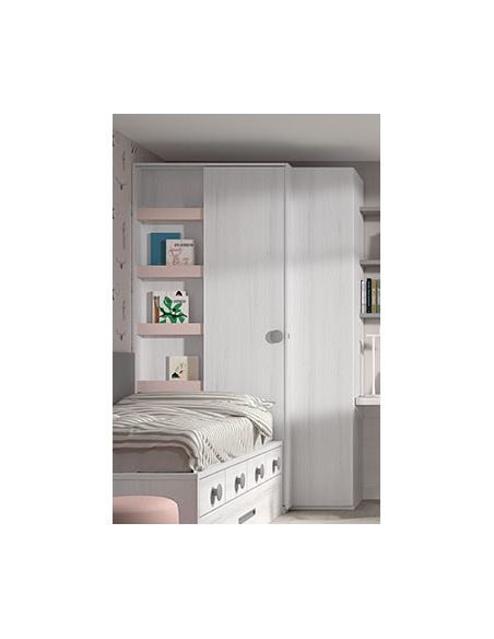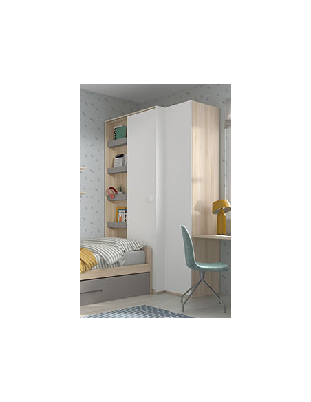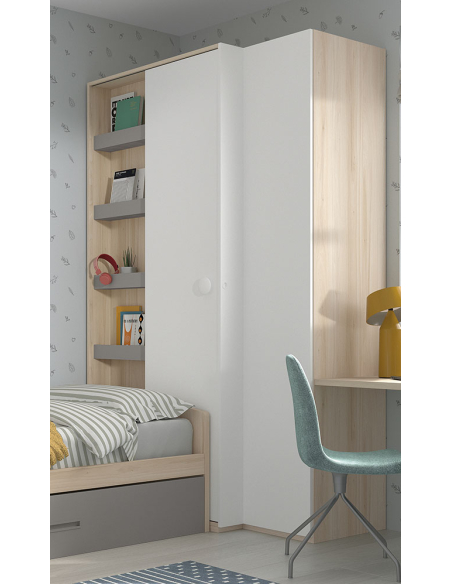Armario juvenil rincón reducido estantería y puerta L batiente