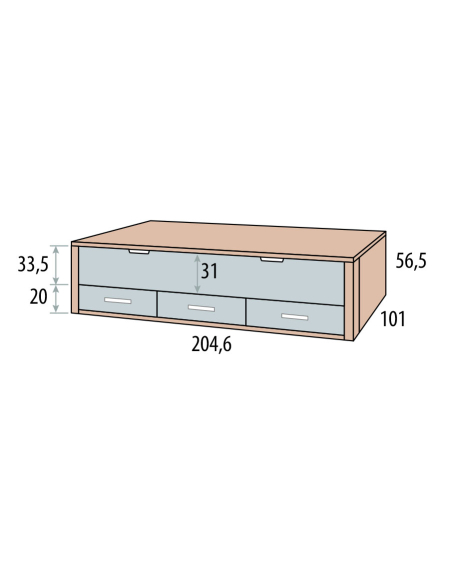 Compacto 190 x 90 cm: ↔ 204,6 ↗ 101 ↕ 56,5 cm / cama nido de 90 x 190 cm