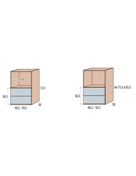 ↔ 50,2 cm ↗ 50 cm ↕ a medida de 73,5 a 83,5 cm