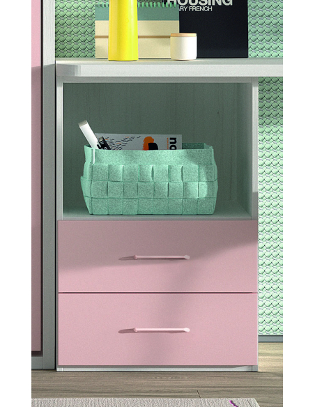 Mueble bajo para mesas de estudio para habitaciones juveniles totalmente personalizable. Con estas piezas podrás elegir los colores base, los frentes de los cajones y los tiradores que más combinen con el dormitorio o la idea de dormitorio que quieras. Con este módulo podrás completar la zona de estudio con espacio de almacenaje extra, tanto con el hueco libre como con los cajones. Este módulo tiene diferentes opciones de medidas disponibles para que encuentres la pieza que más se adapte a vuestras necesidades. Además de elegir el ancho que quieras, podrás elegir el alto, desde los 73,5 cm hasta los 83,5 cm. No te olvides de indicar en el pedido la medida exacta.