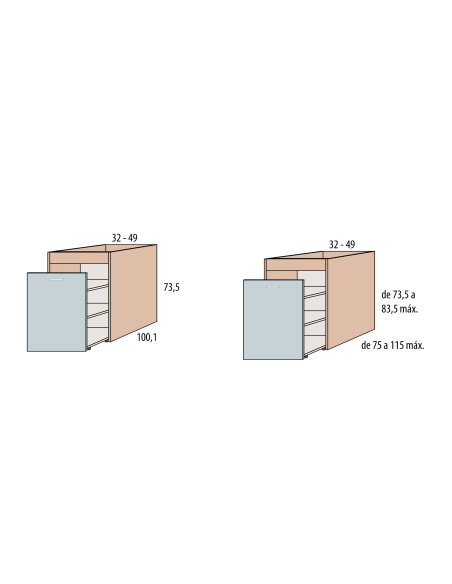 Medidas: ↔ 32-49 cm ↗ 100,1 cm ↕ 73,5 cm / ↔ 32-49 cm ↗ a medida de 75 a 115 cm ↕ a medida de 73,5 hasta 83,5 cm