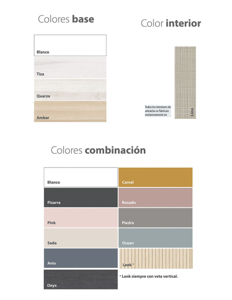 Nota sobre acabados: Los colores pueden variar ligeramente debido a los procesos de impresión.