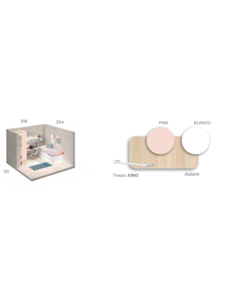 En nuestra búsqueda de la habitación juvenil perfecta, presentamos esta Habitación Juvenil Win Basic 002 compuesta por zona de descanso, estudio y almacenaje de ropa. Todo organizado y con espacio para estudiar y tener todo en orden con tres estanterías colgantes de pared. Una cama compacta bicama con cama nido para colchón de 90x190 cm para cuando venga algún amig@ a dormir que harán las delicias de los pequeños y se completa con un armario de rincón curvo-recto, con la parte interior compuesta por un estante maletero, barra de colgar en todo el ancho del armario y estantería. Una habitación sencilla y a la vez completa. Una habitación diseñada para satisfacer todas las necesidades de los adolescentes combinando funcionalidad con diseño contemporáneo, creando un espacio que inspira la creatividad y el confort.