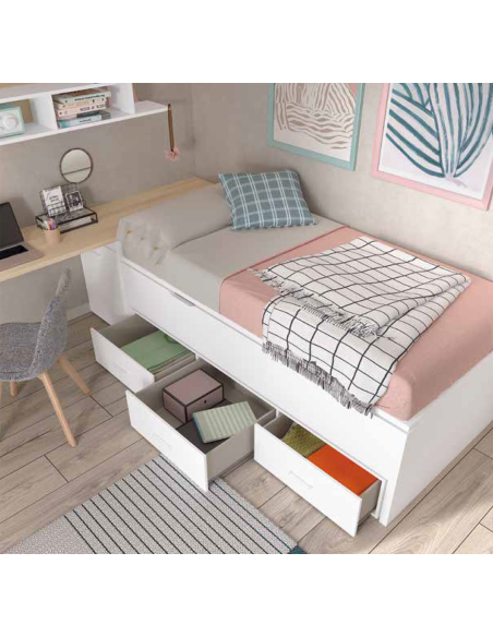- Compacto bicama con nido oculto de 90x190 cm + 3 contenedores ↔ 204,6 cm ↗ 101 cm ↕ 64 cm