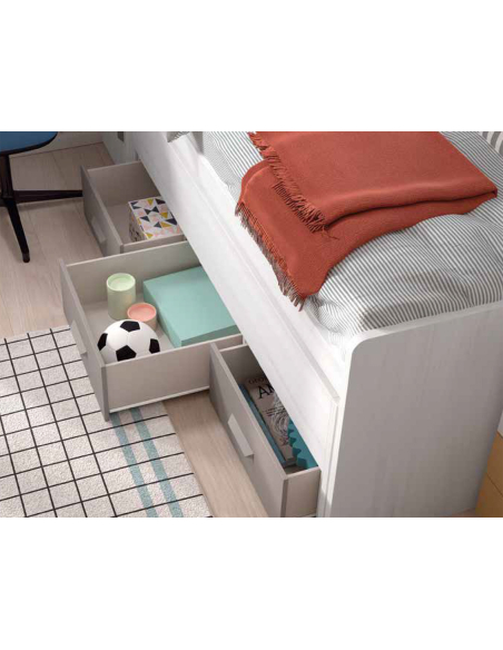 La cama compacta necesita somier de 90x190 cm y en la cama nido de 90x180 cm, no incluidos.