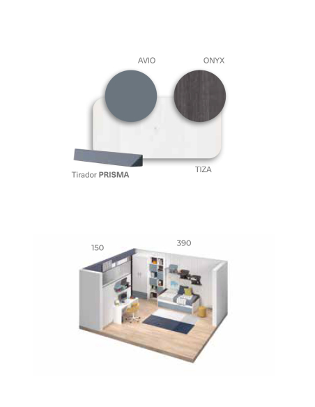 Una habitación completa con un armario 2 puertas 2 cajones, estanterías Join, cama nido Basic para colchón de 90x190 cm con somier de arrastre y se completa con una mesa de estudio salva rodapié Basic. Una habitación sencilla y a la vez completa diseñada para satisfacer todas las necesidades de los adolescentes combinando funcionalidad con diseño contemporáneo, creando un espacio que inspira la creatividad y el confort. Todo organizado con espacio para estudiar y con cama adicional para cuando venga algún amig@ a dormir, una habitación que hará las delicias de los pequeños.