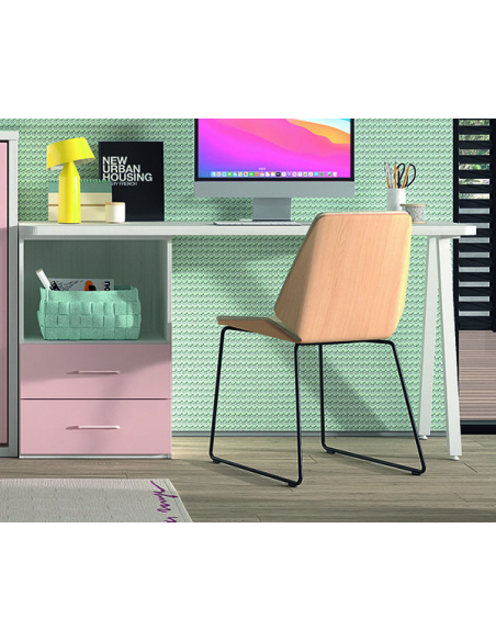 Escritorio Basic con bajo mesa dos cajones y hueco y pata metálica. Esta mesa de estudio esta diseñada para la máxima funcionalidad, ofreciendo un lugar de estudio organizado y versátil. La mesa proporciona un amplio espacio para trabajar, mientras que la cajonera con dos cajones espacioso y un práctico hueco nos ofrece espacio de almacenaje y organización, la pata metálica ofrece ligereza visual y solidez. Un conjunto sencillo e imprescindible para nuestra zona de trabajo o estudio.