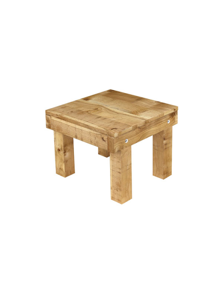 Mesa de centro o reposapiés Chill Out. Un modelo de mesa de centro apto para exterior, de sencillo diseño en madera de pino, con opción de adquirirlo con un cojín que le aporta el doble uso de reposapiés.