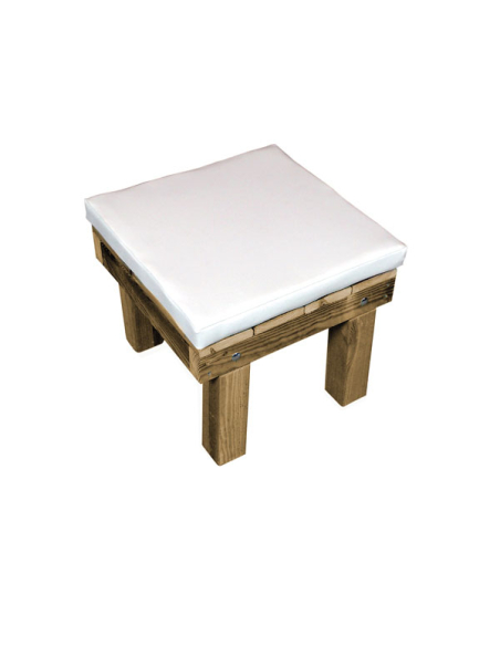 Mesa de centro o reposapiés chill out. Un versátil mueble de nuestra colección de mobiliario Chill Out para hostelería, fabricado en madera de pino con tratamiento Autoclave, que garantiza la no putrefacción, requisito importante si estás buscando muebles de exterior. Puedes elegir entre el modelo sin o con cojín, y puedes customizar el mismo con los distintos tipos de tela que te ofrecemos.
