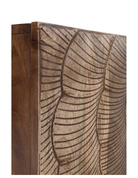 Mueble TV Malaquita 2 puertas 2 cajones, elaborado en madera maciza de mango con un diseño moderno y elegante. Su frente texturizado con relieve de fantasía aporta carácter y estilo a cualquier salón. Cuenta con 2 puertas y 2 cajones, todos con bisagras de cierre suave e imán de seguridad, ideales para mantener tus dispositivos y accesorios organizados. Los pies metálicos de 11?cm en color negro con regulador de altura garantizan estabilidad y un toque contemporáneo que combina con distintos estilos de decoración. Un mueble funcional y sofisticado que transforma tu espacio audiovisual en un punto destacado de tu hogar.