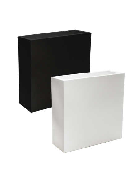 Jardinera MURO rectangular. Válida para interior o exterior. Resina alta resistencia. Colores: blanco y negro.