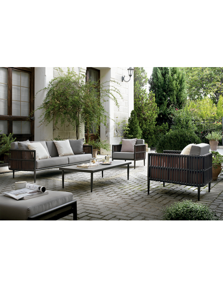 Disfruta del sofá tres plazas Delta para tu terraza o jardín. Con la colección Delta tendrás el exterior que siempre has soñado, y podrás disfrutar con amigos y familia del Sol y el buen tiempo. Sus calidades y materiales son los mejores para este tipo de mobiliario. Puedes combinarlo con más piezas de la colección Delta para crear un espacio donde pasar todos los días de buen tiempo.