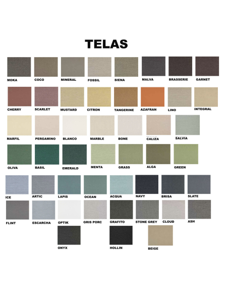 Cojines desenfundables con cremallera. Tejido 100% acrílico repelente al agua. Telas a elegir del muestrario.