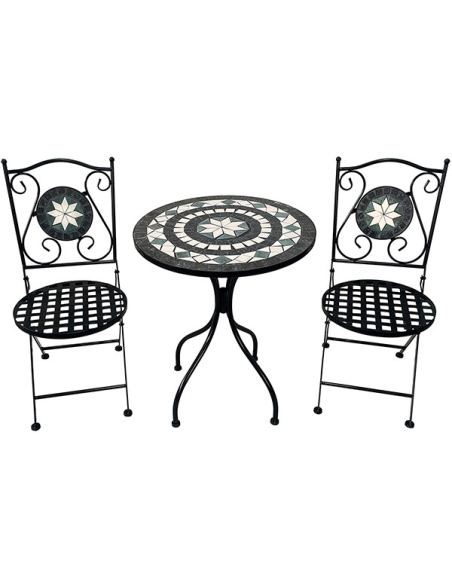 Set Miami 2 sillas y mesa hierro con piedra verde