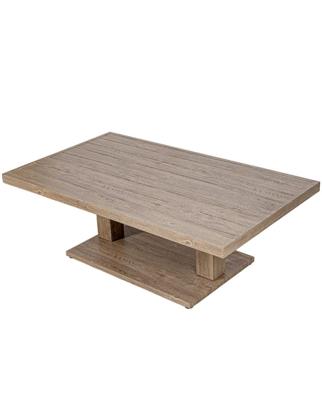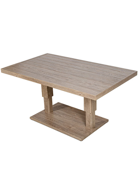 Mesa Nice exterior de aluminio crema, combina la durabilidad y ligereza del aluminio con un elegante efecto madera que añade un toque natural y cálido a cualquier ambiente exterior. Con una altura regulable, se adapta perfectamente a tus necesidades, ya sea para una comida al aire libre, una tarde de café o como mesa auxiliar. Sus dos patas robustas y una base rectangular más pequeña aseguran estabilidad y estilo, haciéndola ideal para jardines, terrazas o patios. La resistencia a la intemperie y su fácil mantenimiento convierten a esta mesa en una opción práctica y estética para disfrutar de tus momentos al aire libre.