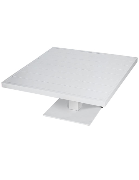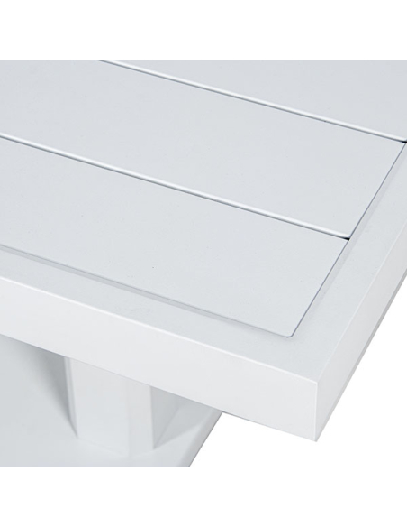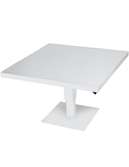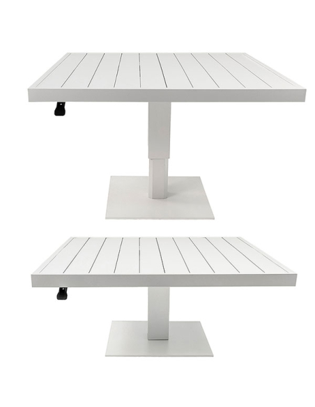 Mesa Nice exterior cuadrada de aluminio blanca, con altura regulable permite adaptarse a cualquier actividad al aire libre, desde cenas hasta reuniones sociales, ofreciendo comodidad y versatilidad. La base cuadrada pequeña y su robusta construcción en aluminio aseguran estabilidad y una larga vida útil, resistiendo las inclemencias del tiempo. Además de su funcionalidad, esta mesa aporta un toque de elegancia y modernidad a cualquier jardín, terraza o patio. Fácil de limpiar y mantener, esta mesa es una adición esencial para disfrutar de momentos al aire libre con estilo y comodidad.