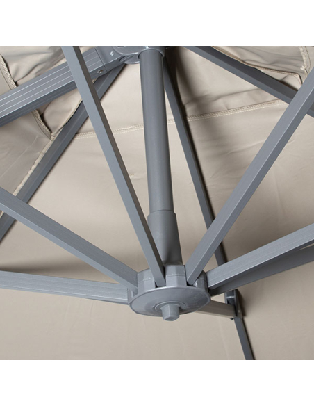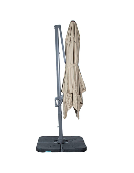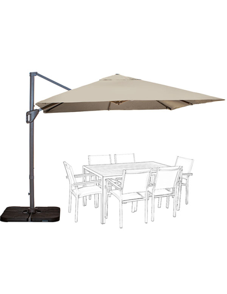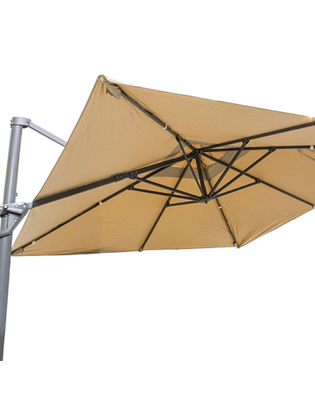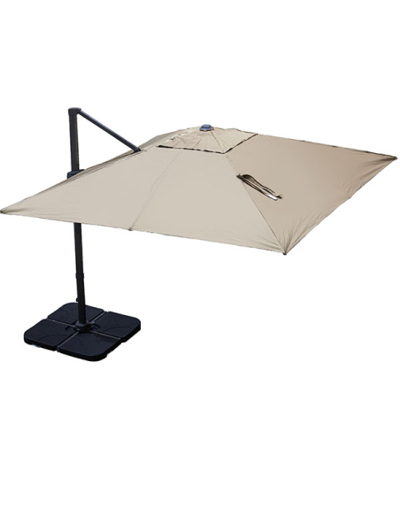 Parasol cuadrado aluminio y poliéster arena, su estructura color negro garantiza estabilidad y resistencia, mientras que el sistema de apertura y cierre manual sin esfuerzo ofrece comodidad en su uso. El textil de poliéster en tono arena proporciona una protección efectiva contra los rayos del sol, mientras que la abertura en la parte superior permite una adecuada circulación del aire, manteniendo un ambiente fresco y agradable. Además, su diseño giratorio de 360 grados te permite ajustar la sombra según tus necesidades, convirtiéndolo en el compañero perfecto para disfrutar del aire libre con estilo.
