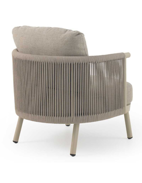 Mesa de comedor exterior Amura redonda aluminio cerámica travertino