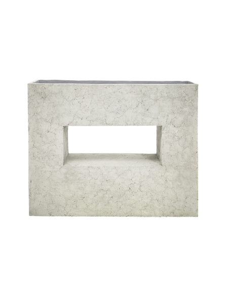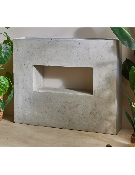 Jardinera-separador Krova 100 cm, práctica y elegante jardinera de diseño rectangular con espacio superior para colocar plantas, fabricada en fibrocemento de alta resistencia. Su estilo minimalista con acabado símil piedra permite utilizarla como pieza decorativa o como separador de ambientes, aportando tanto funcionalidad como estética. Con sus medidas de 116 x 26 x 27 cm, resulta perfecta para situar en terrazas, salones o entradas, creando un toque natural y sofisticado. Gracias a su formato, combina muy bien con plantas verdes de porte medio o arreglos secos, aportando calidez y diseño a cualquier espacio.