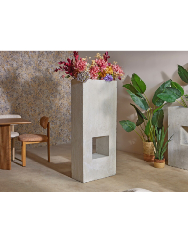 Jardinera-separador Krova 140 cm, esta jardinera de líneas limpias y modernas destaca por su forma rectangular alargada y su funcionalidad como separador de espacios. Fabricada en fibrocemento, combina resistencia y ligereza visual, lo que la convierte en una pieza perfecta tanto para interiores como para exteriores. Con medidas de 55 x 25 x 27 cm en el espacio superior para plantas, permite crear composiciones verdes que aportan frescura y vitalidad al ambiente. Su diseño contemporáneo facilita la integración en estilos minimalistas, nórdicos o industriales, ofreciendo un recurso decorativo versátil y elegante.