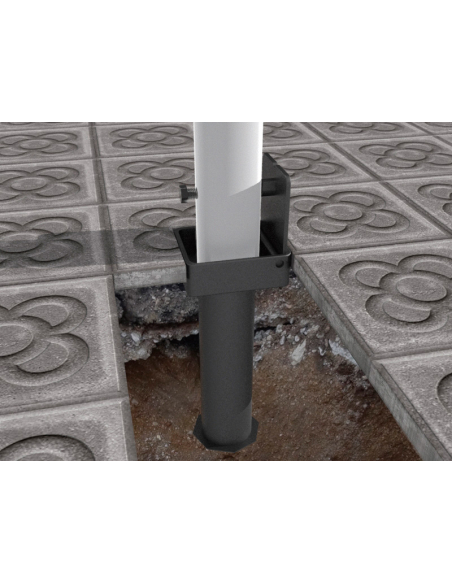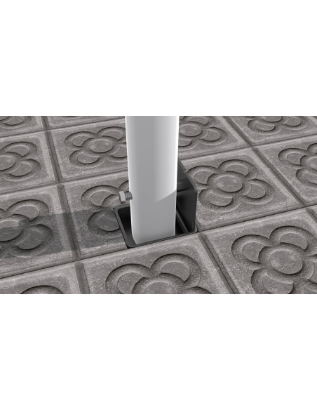 Base metálica de parasol empotrable galvanizada. Empotrable con bisagra para facilitar la colocación del parasol. Exclusiva para parasol GIANT.