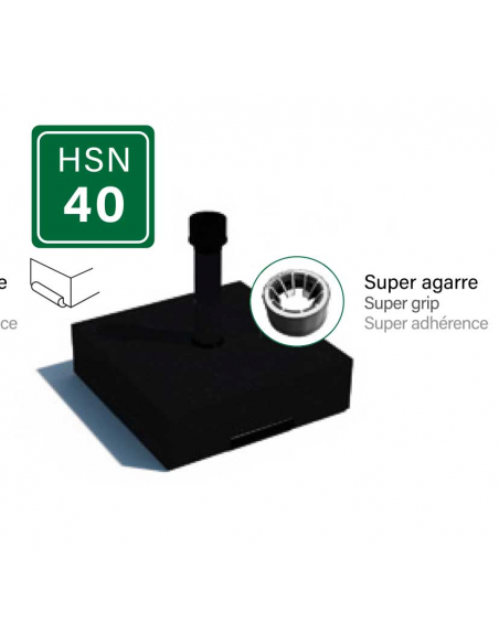 Base de parasol de 40 kg. Indicado para parasoles hosteleros con tubos entre 21 y 52 mm de diámetro, esta base de parasol tiene un tubo de aluminio ajustable ABS con agarre y rueda de resina. Con carcasa de resina, resistente a los golpes y a los arañazos, acabada en imitación granito. Este modelo está fabricado en cemento, con 40 kg de peso.