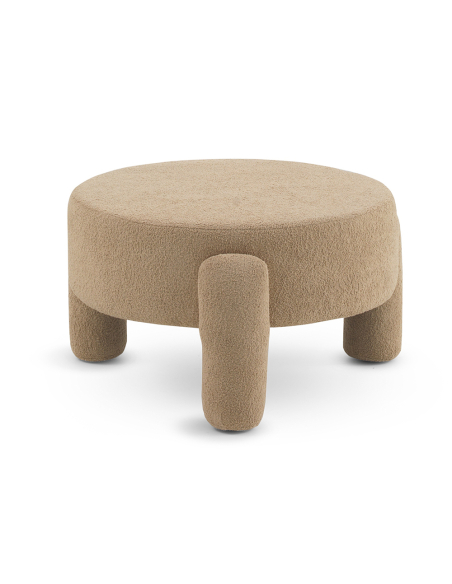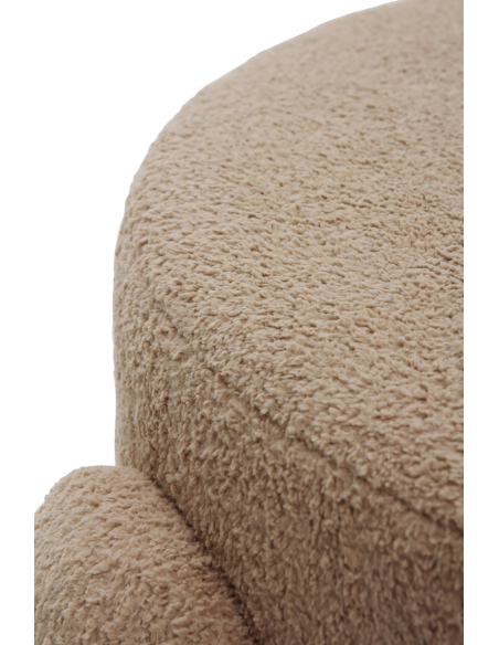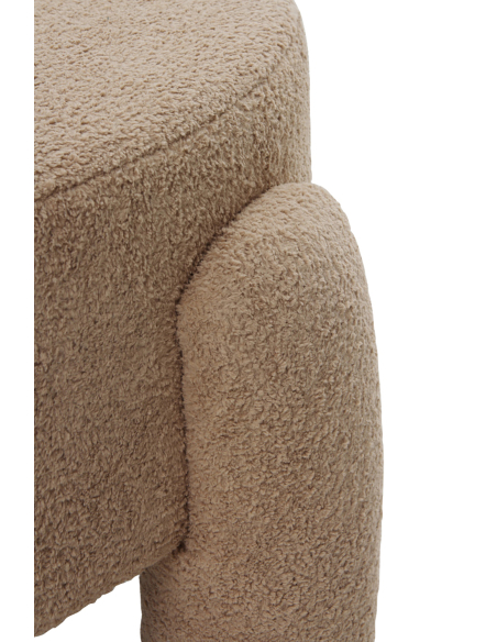 Puf Alborán estructura y patas tapizadas, este encantador puf destaca por su tapizado integral en suave tejido bouclé, una textura tendencia que aporta calidez y un tacto muy agradable. Su forma redonda con esquinas suavizadas y sus características patas robustas, también tapizadas, crean una pieza escultural y divertida, perfecta para añadir un toque acogedor a cualquier rincón. El Puf Alborán es increíblemente versátil. Utilízalo como un cómodo reposapiés junto a tu sofá o butaca favorita, como asiento auxiliar cuando tengas invitados, o incluso como una original mesita auxiliar improvisada colocando una bandeja encima. Su tono beige neutro se integra fácilmente en diversas paletas de colores y estilos decorativos, desde el nórdico hasta el más moderno. Listo para usar al instante, ya que no requiere montaje, este puf es una adición práctica y estilosa para tu salón, dormitorio o vestidor. Su diseño único, con la estructura y las patas completamente tapizadas en bouclé, lo convierte en un punto focal suave y acogedor que invita al relax.