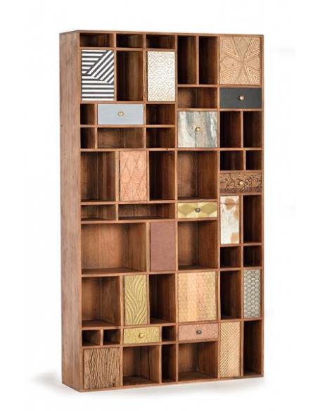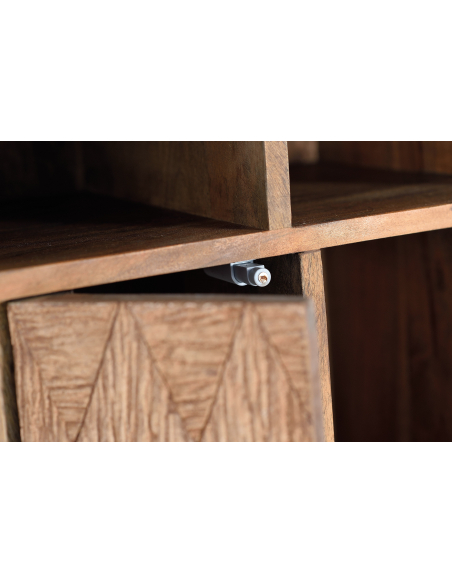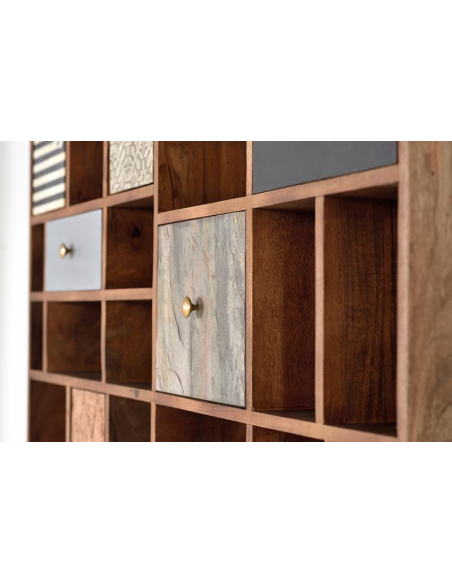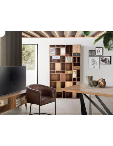 Con esta librería 7 cajones y 11 puertas en madera de mango podrás hacer lucir tus libros y mejor decoración. Una combinación de materiales única que, sin duda, convertirá tu estancia en un espacio inigualable.