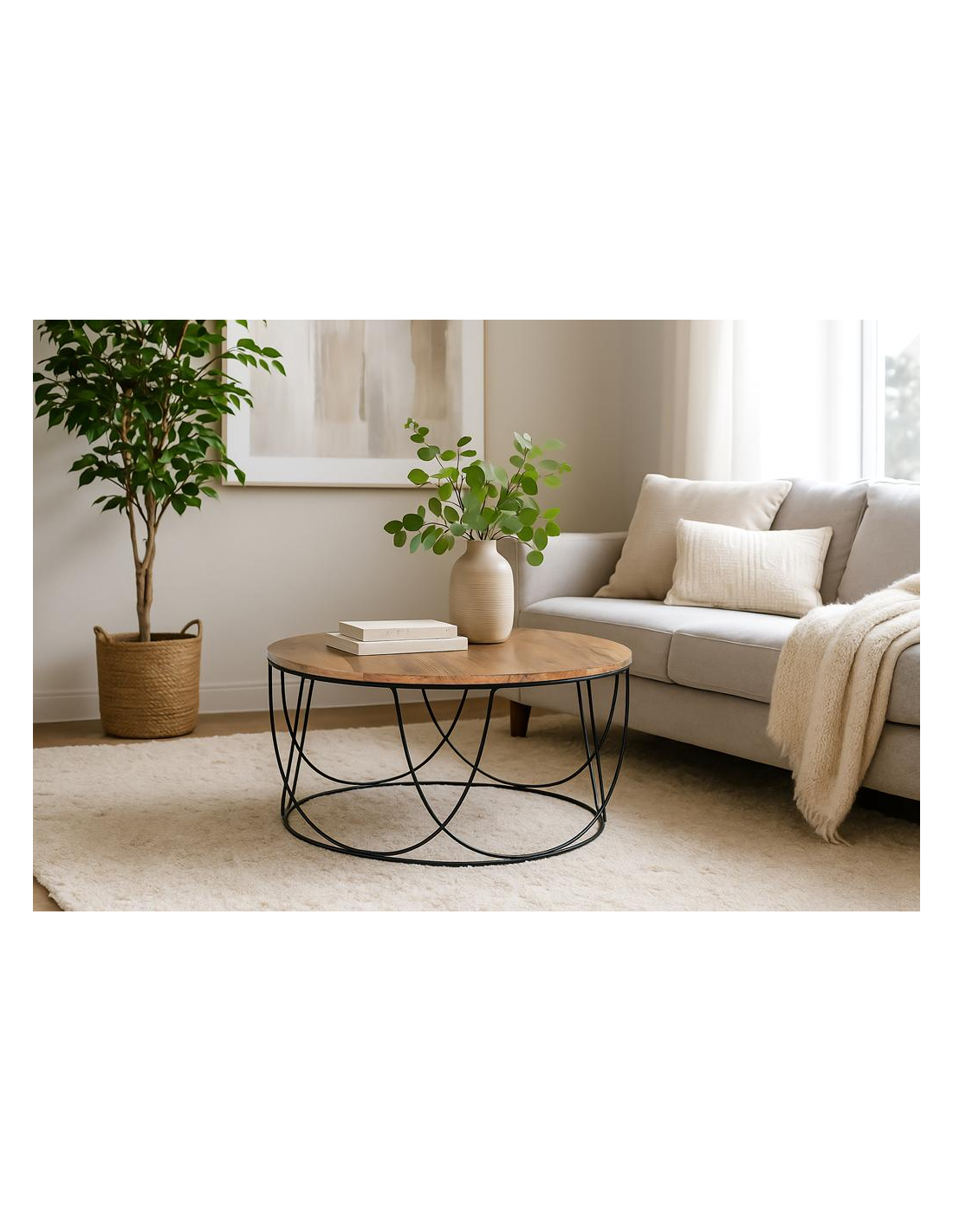 Sencilla mesa de centro en madera de mango y metal que ambientará tu salón desde el minuto 1. Es la pieza perfecta para darle un toque de luz y color al espacio y decorar y combinar con el resto de mobiliario y decoración.