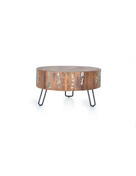 Sencilla mesa de centro en madera reciclada y patas de metal que ambientará tu salón desde el minuto 1. Es la pieza perfecta para darle un toque de luz y color al espacio y decorar y combinar con el resto de mobiliario y decoración.