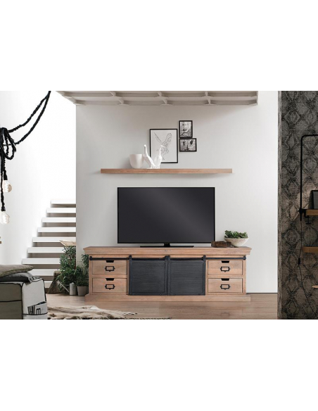 Mueble tv 4 cajones y 2 puertas correderas en madera de mango