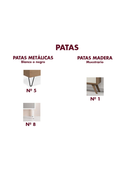 Personalizables: encimera, estructura y patas madera nº 1 en cualquier acabado de la carta de madera y lacados, patas metálicas en blanco o negro.
