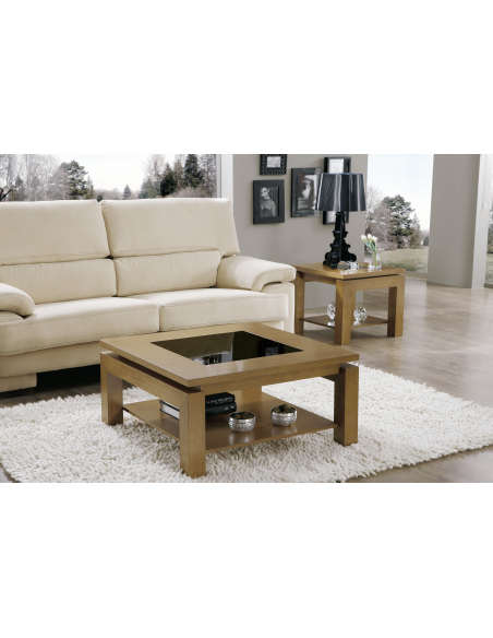 - 1. 90 x 90 cm - Chapa madera Roble-2 + tapa cristal central Negro
