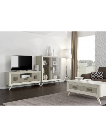 Composición de salón modelo CLOE compuesto por: mueble de TV, vitrina baja dos puertas y mesa de centro.