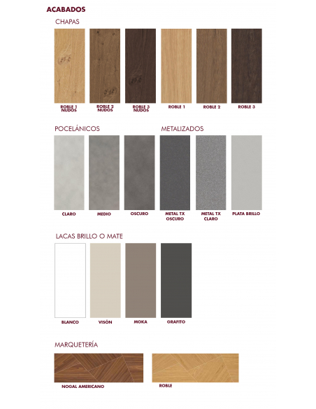 Muestrario orientativo: Puede haber ligeras variaciones de los acabados.