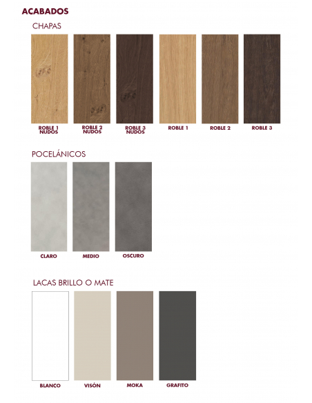 Muestrario orientativo: Puede haber ligeras variaciones de los acabados.