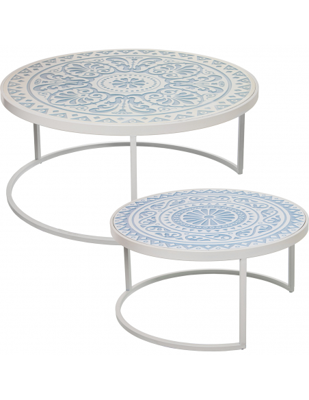 Set 2 mesas nido azul y blanco perfectas para conseguir un rincón único y personal donde disfrutar de un espacio tuyo y armónico.