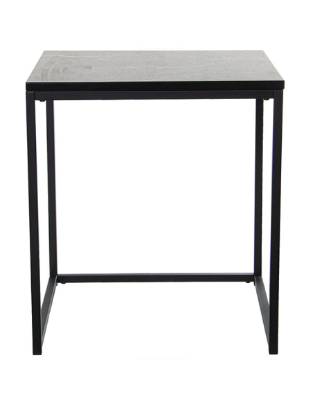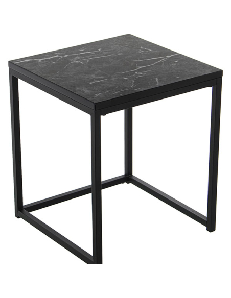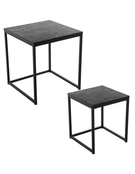Set dos mesas auxiliares metal y madera acabado mármol negro
