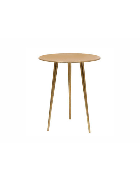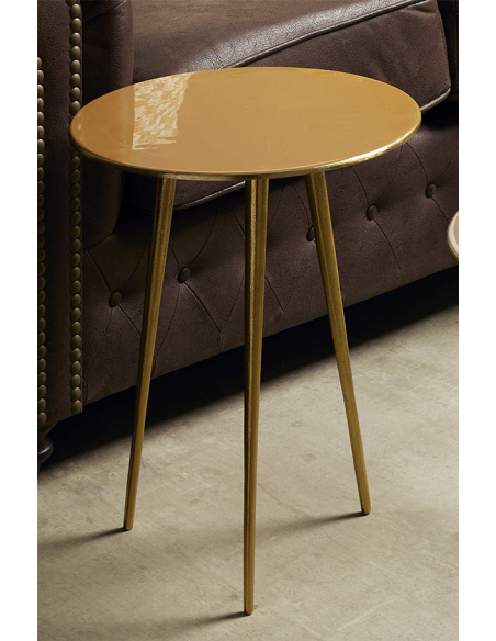 Mesa auxiliar Niamh redonda cobre mostaza con oro trípode oro
