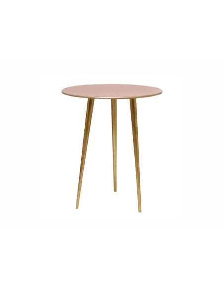Mesa auxiliar Niamh redonda cobre rosa con oro trípode oro.