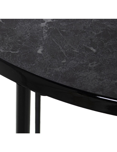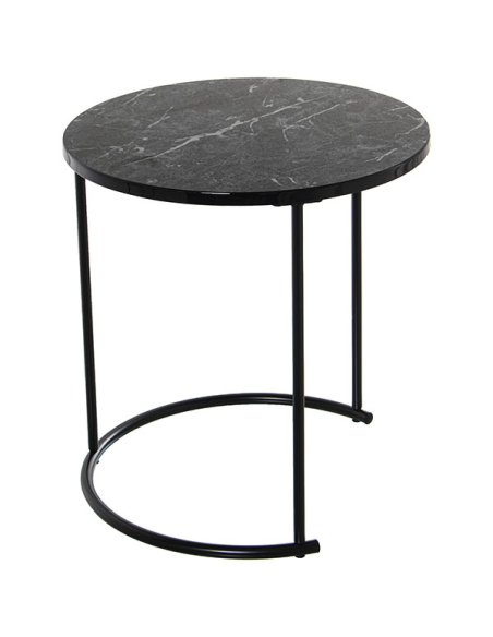 Set 2 mesas auxiliares metal y madera acabado mármol negro