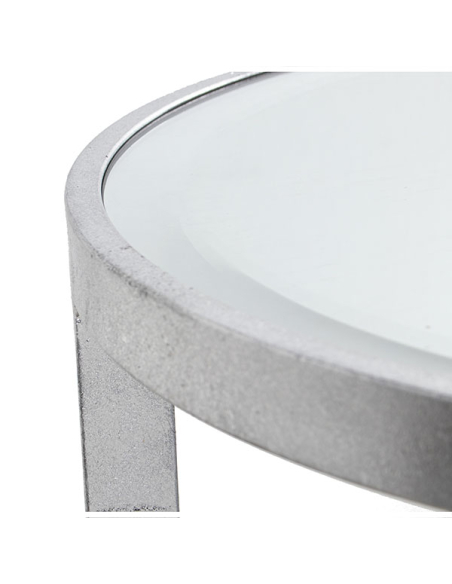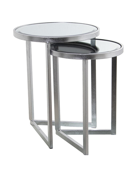 Set 2 mesas auxiliares plateadas con cristal espejo