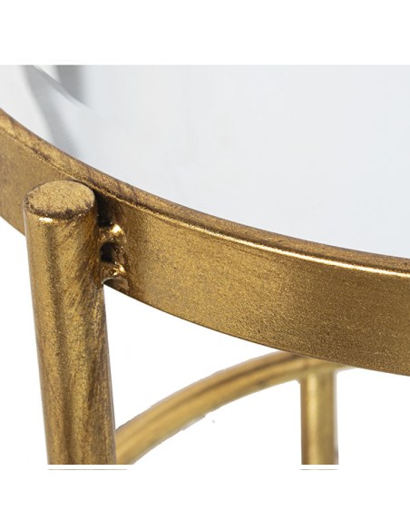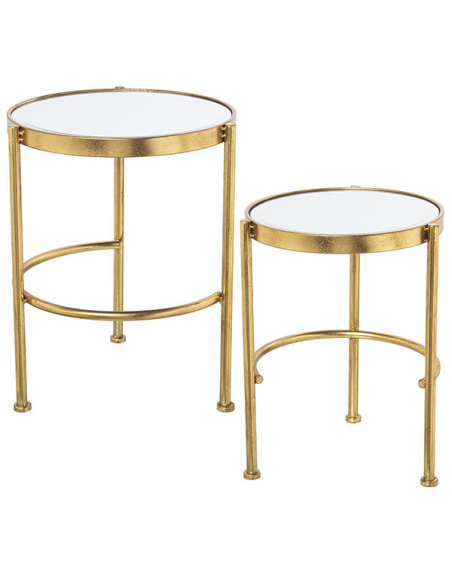 Set 2 mesas auxiliares metal dorado con cristal espejo